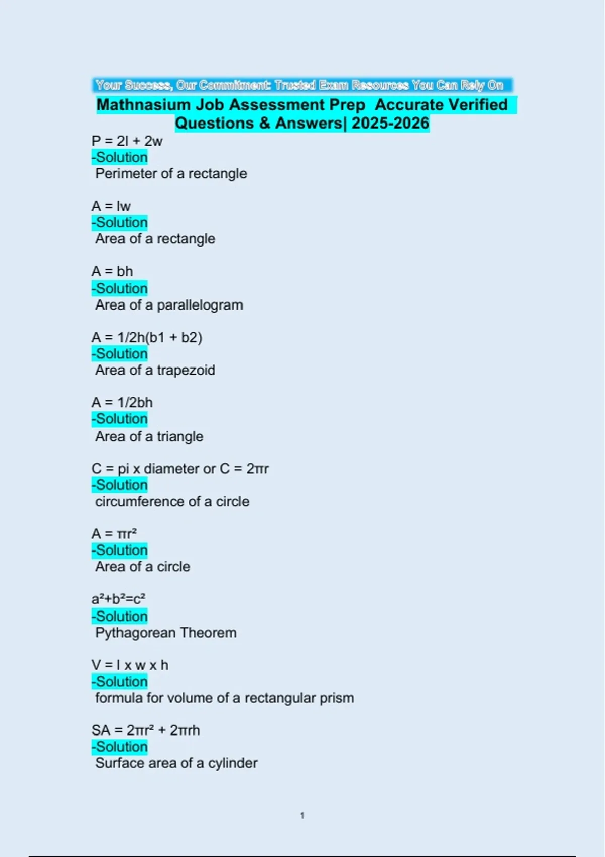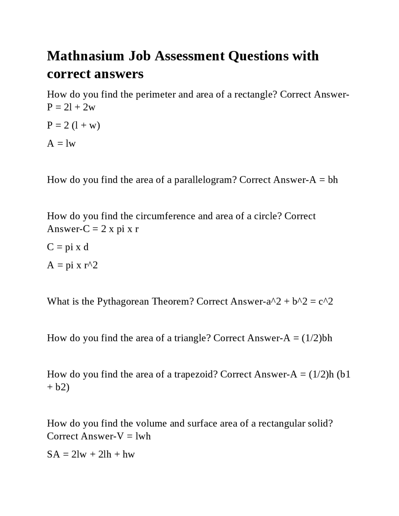 Mathnasium Job Assessment 2025/2026 – 80+ Verified Questions & Formulas ...