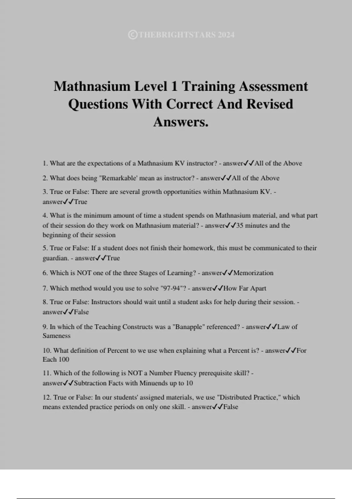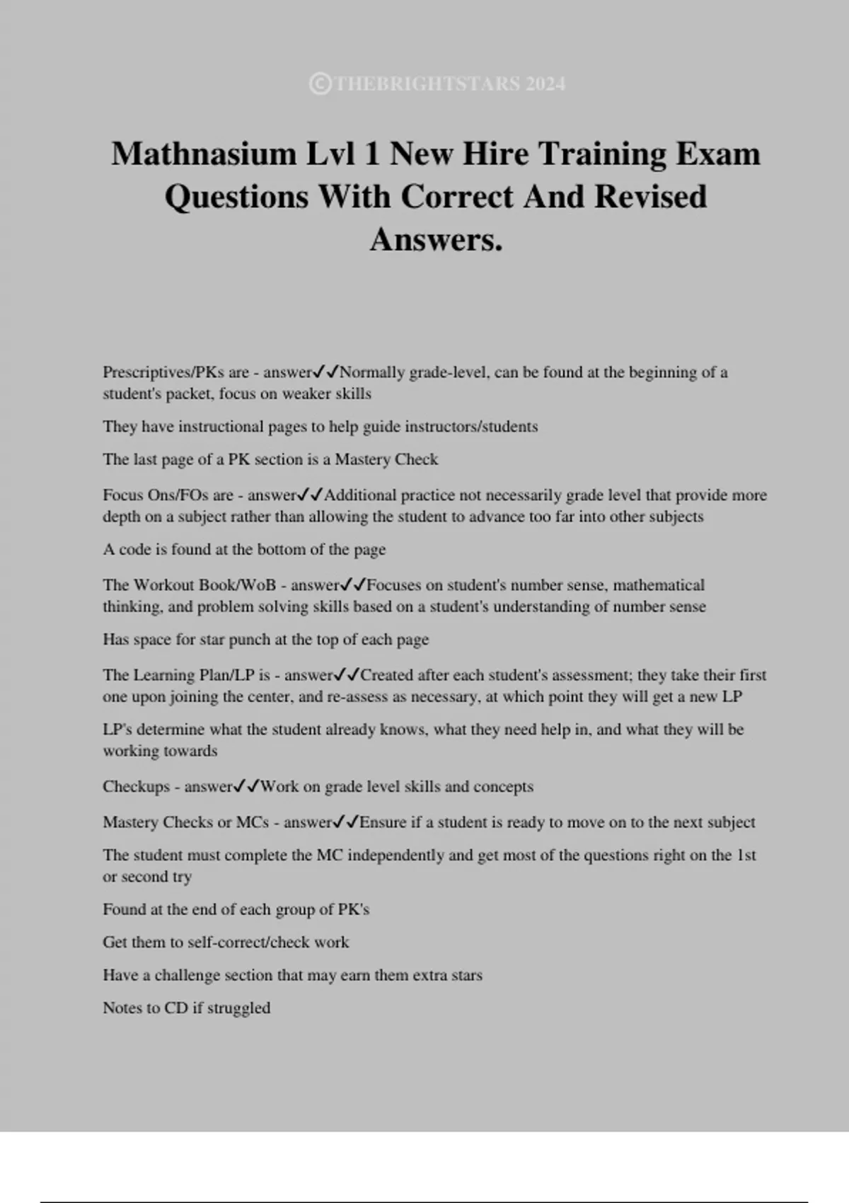 Mathnasium Lvl 1 New Hire Training Exam Questions With Correct And ...