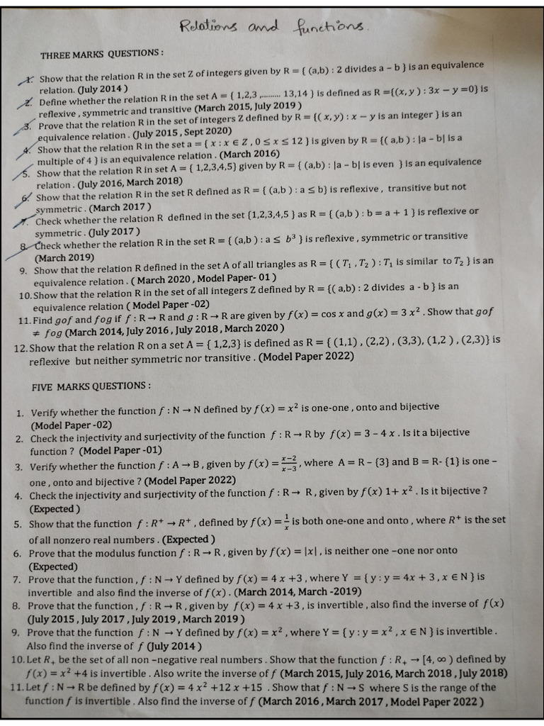 SOLUTION: Functions pyq practice sheet maths maths - Studypool