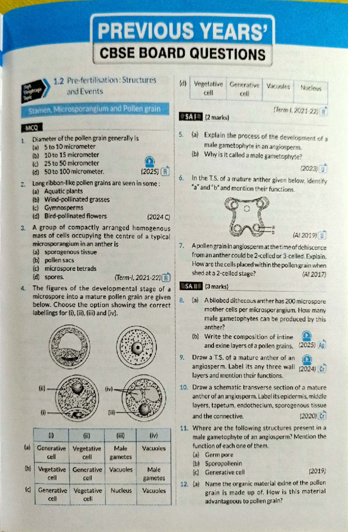 Class 12 Biology Chapter 1: Structures and Events - Previous Year ...