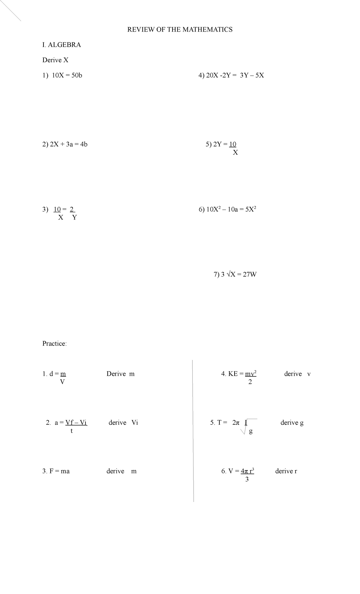 Math-review - Copy - Notes - REVIEW OF THE MATHEMATICS I. ALGEBRA ...