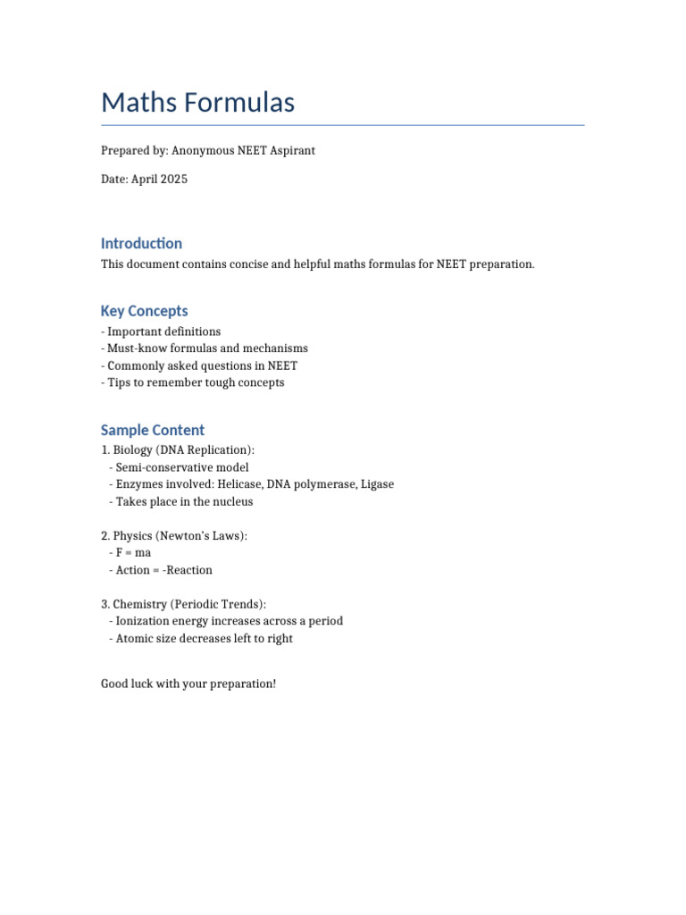 Formula - Basic Maths for NEET Students