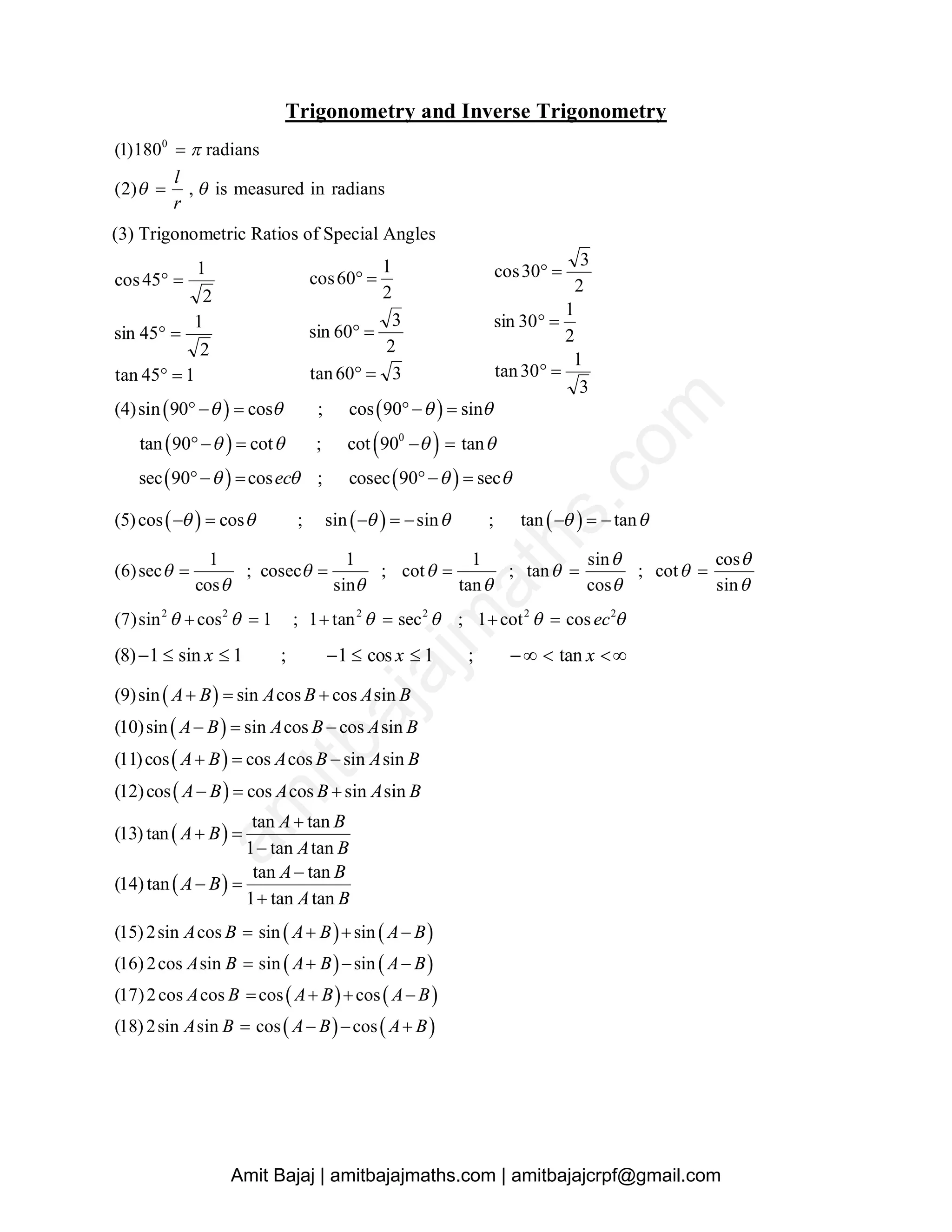 Maths Formulas | PDF | Trigonometric Functions | Perpendicular