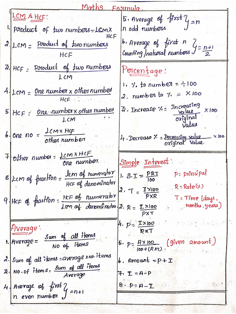 Math Formulas |Basic Maths Formulas for CBSE Class 6 to 12 with PDFs