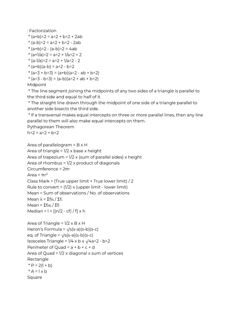 SOLUTION: Maths formulas for class 10 pdf - Studypool