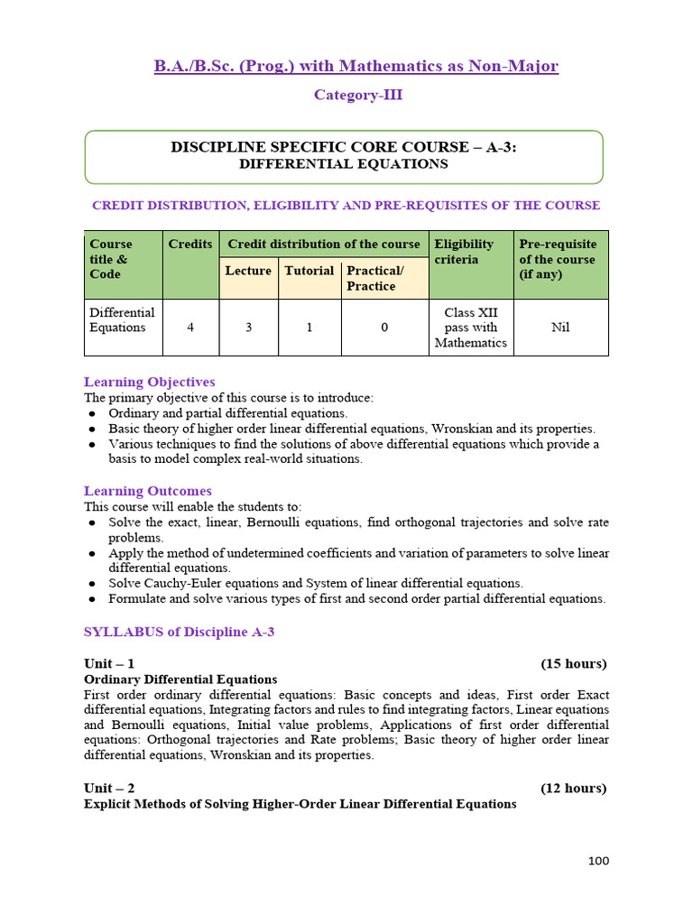 Mathematics Minor Sem 3 Syllabus | PDF | Equations | Differential Equations