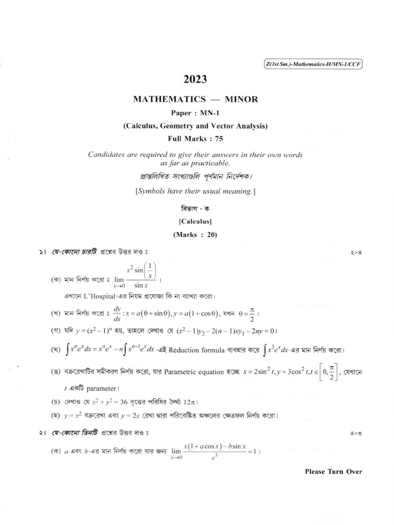 Maths (Minor) 2023 Sem-I MN-1 | PDF | Applied Mathematics | Mathematics