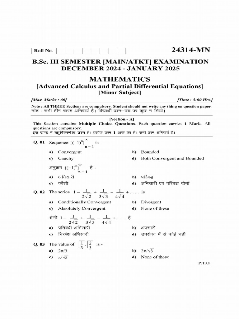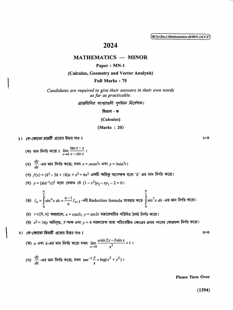 Maths Minor Paper MN-1B Semester-3 Most Important Question FYUGP ...