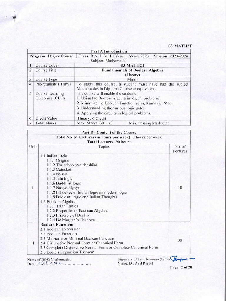 Bachelors With Mathematics As Minor 6 Semester Theory: 45 Hours ...