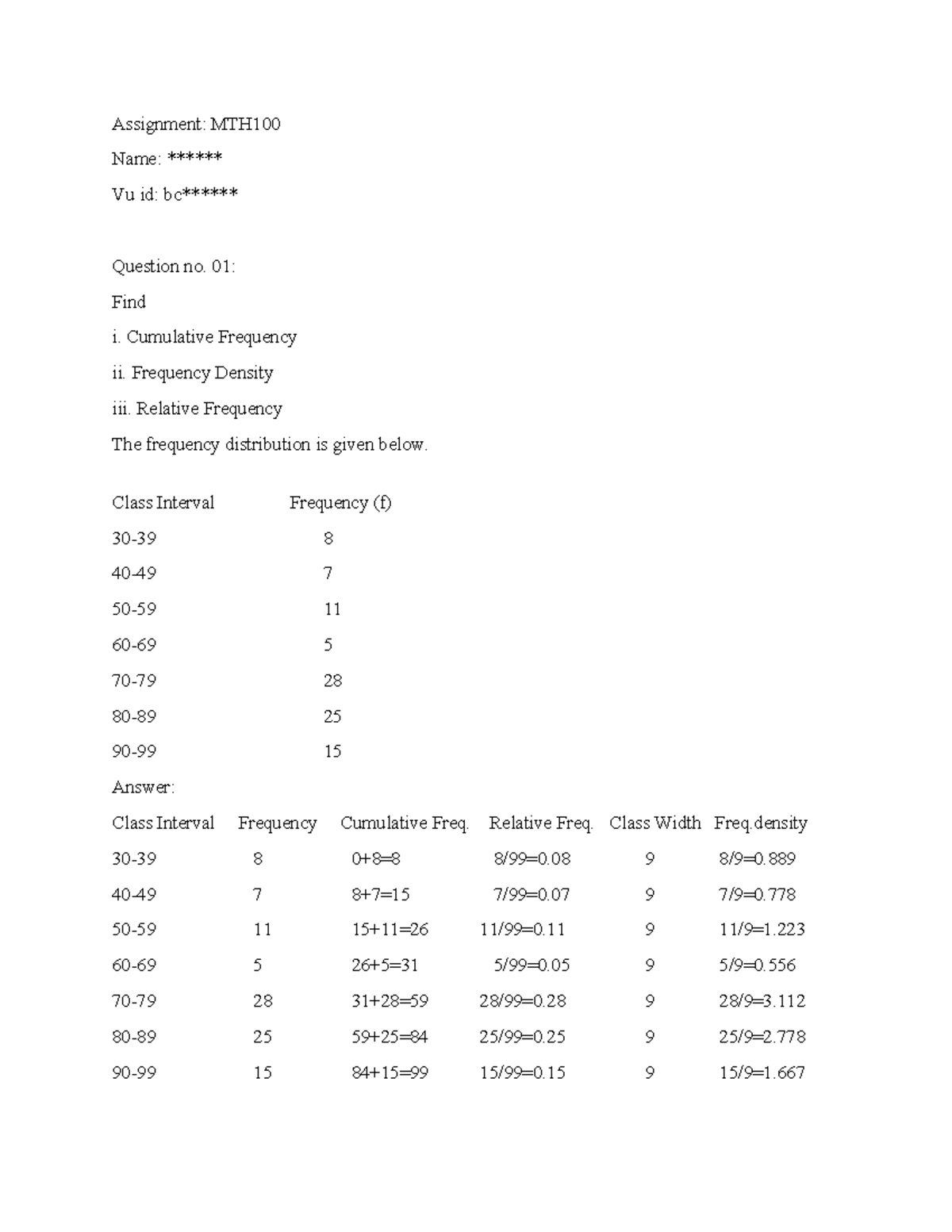 Maths-Assignment-format - Assignment: MTH Name: ****** Vu id: bc ...