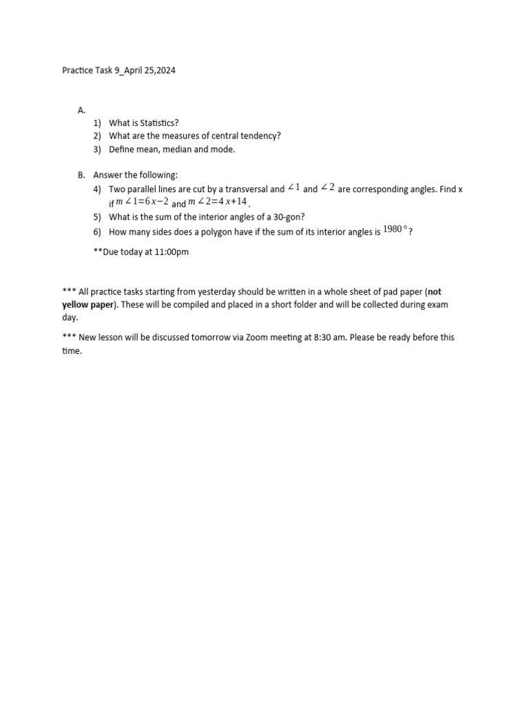 Math Practice Task for Students | PDF | Teaching Methods & Materials
