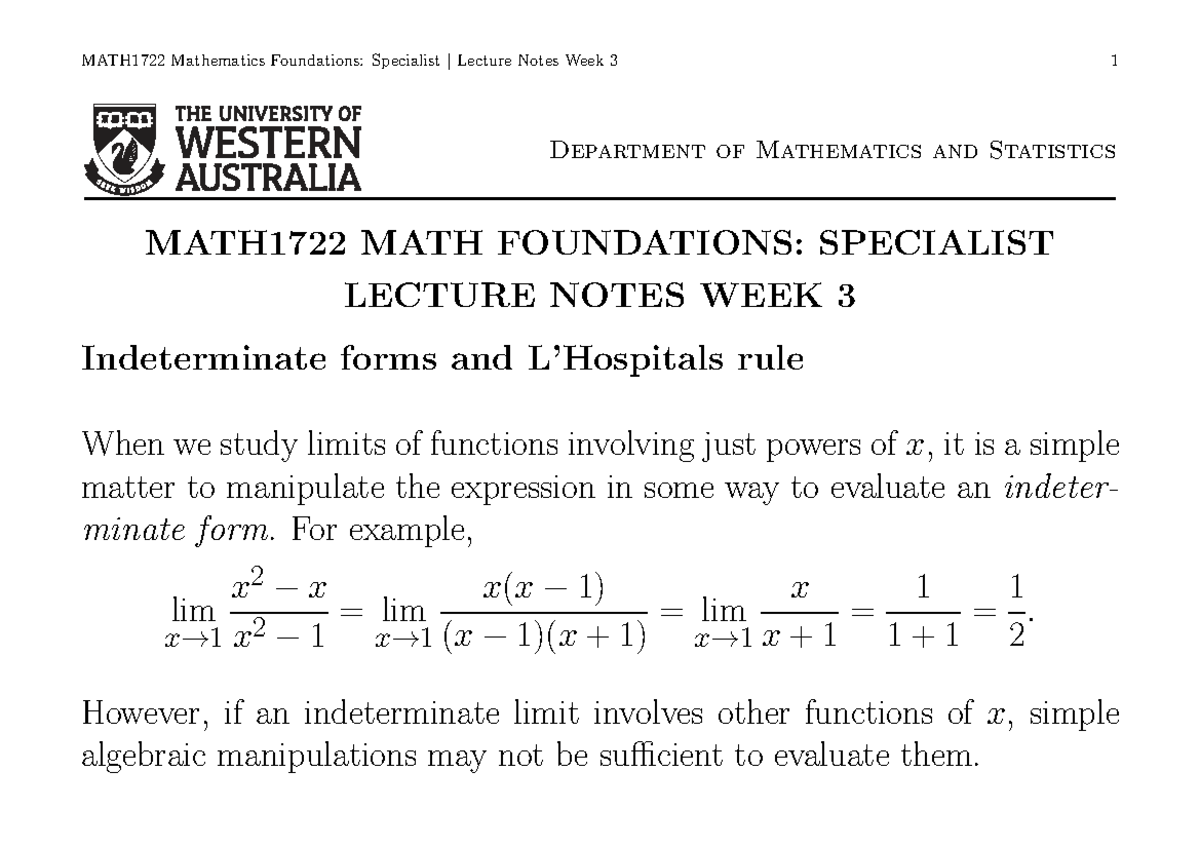 MATH1722 Mathematics Foundations: Specialist Lecture Notes Week 3 - Studocu