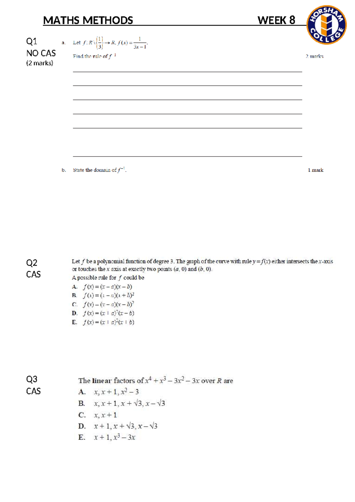 Week 8 - Week 8 Methods - MATHS METHODS WEEK 8 Q NO CAS (2 marks) Q CAS ...