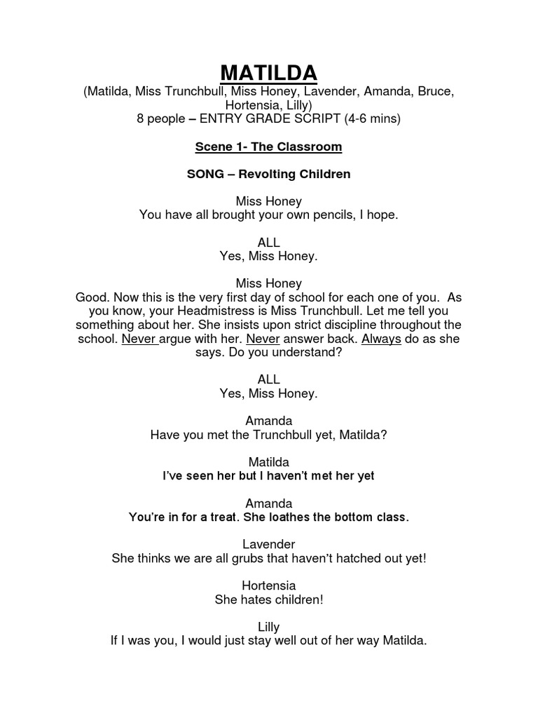 MATILDA SCRIPT - Emerson Johnston Matilda OPEN MUSICAL CATERGORY B ...