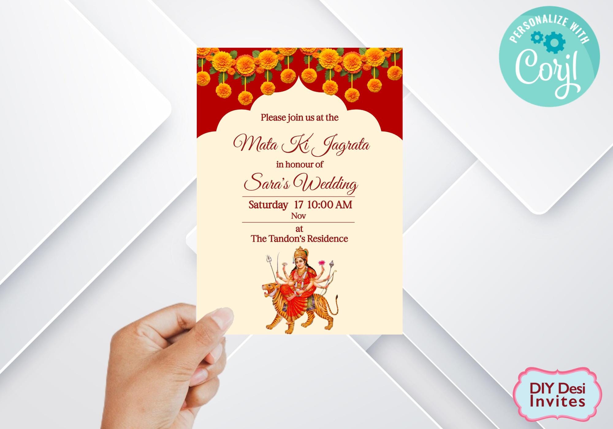 Mata Ki Jagrata Invitation | 5x7 Instant Printable Invite & Mobile ...