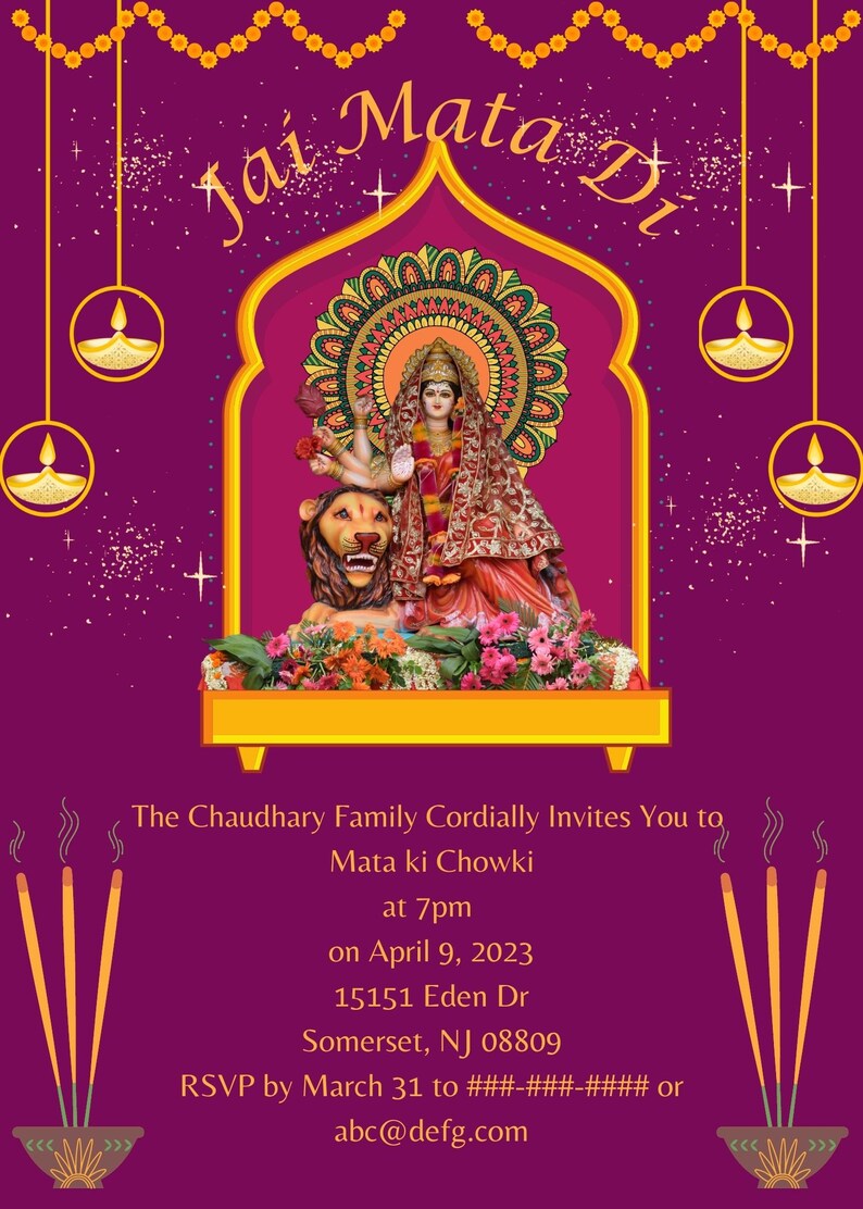 Mata Ka Jagran Virtual and Printable Invitation. Easy to Use, Editable ...