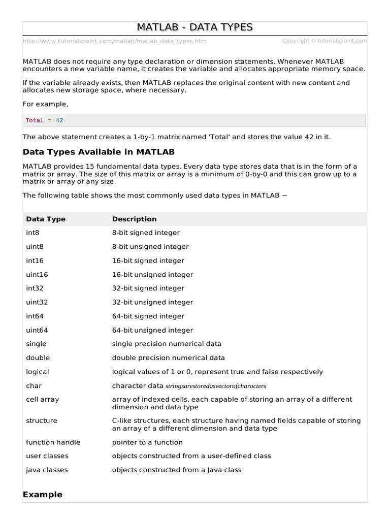 MATLAB Data Types - Tpoint Tech