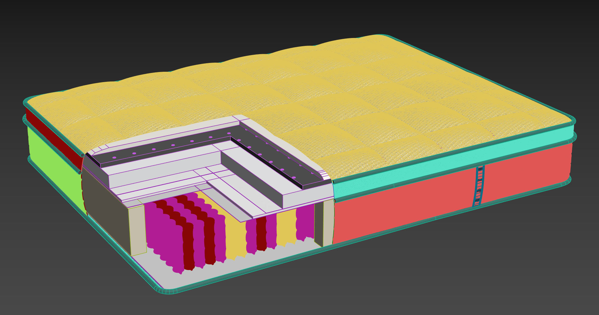Cross section showing a mattress and the springs inside. 3D ...