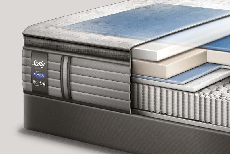 A detailed cutaway illustration of a mattress showcasing its internal ...