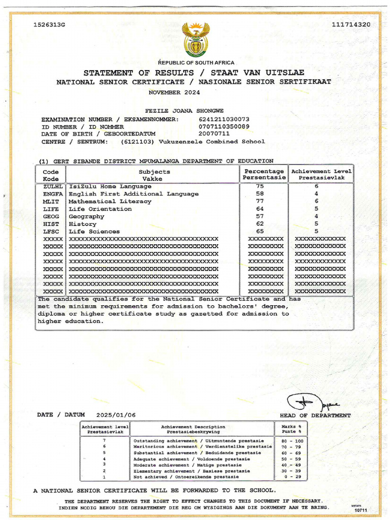 Matric Statement of Results Explained For Admissions