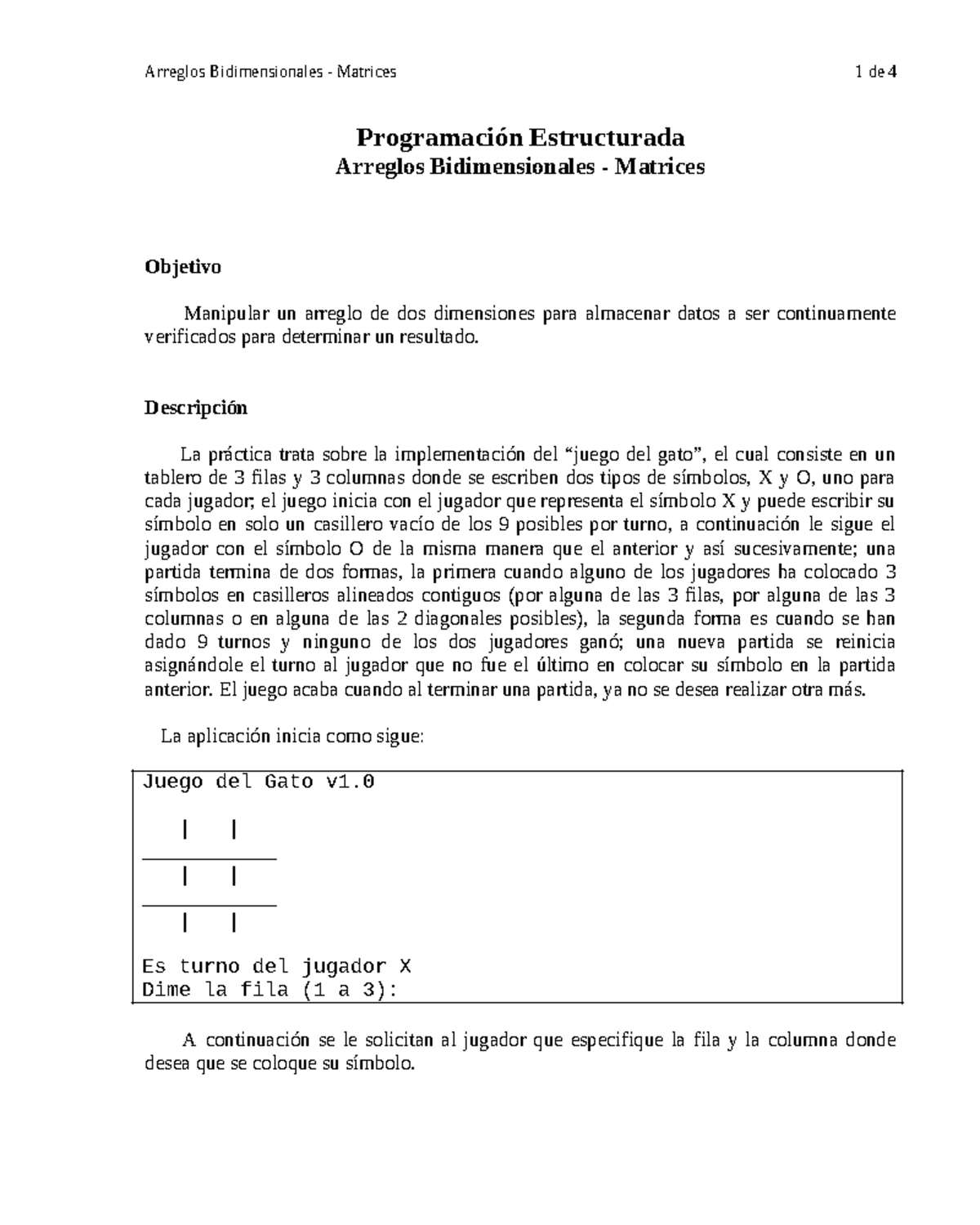 Práctica 7 - Matrices - PRÁCTICA 7 Matrices Lenguaje de Programación ...