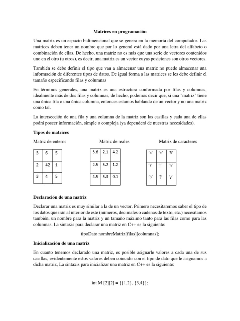Resumen de Matrices - Programación | PDF | Matriz (Matemáticas ...