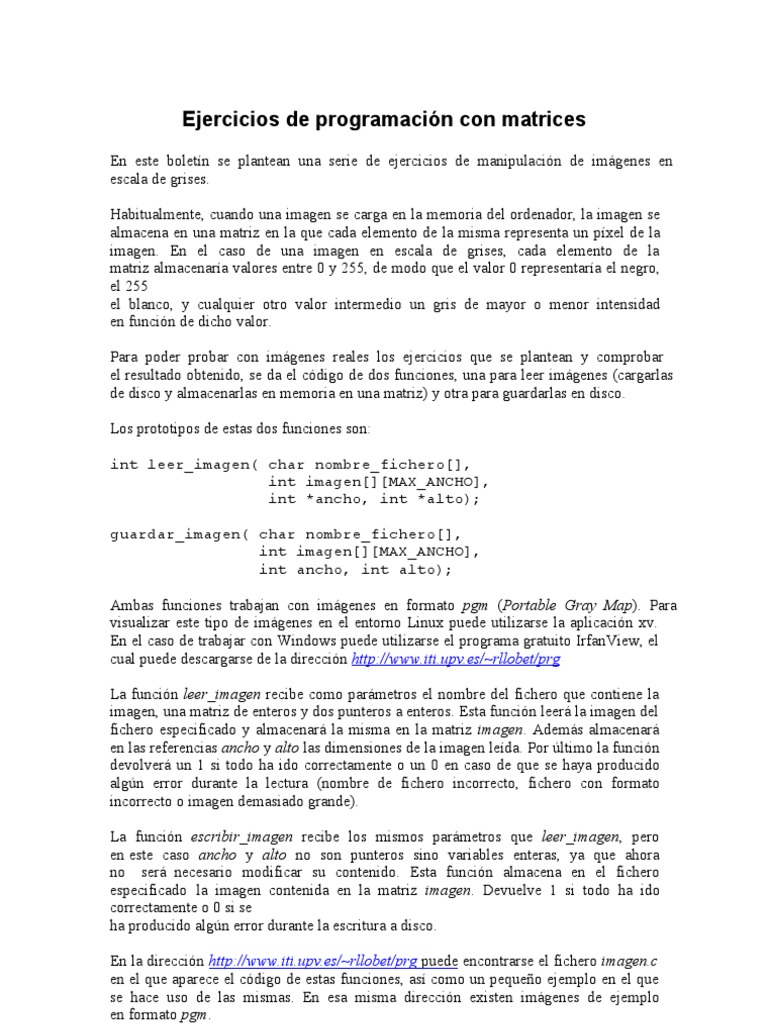 Ejercicios Matrices | PDF | Puntero (Programación de computadora) | Píxel