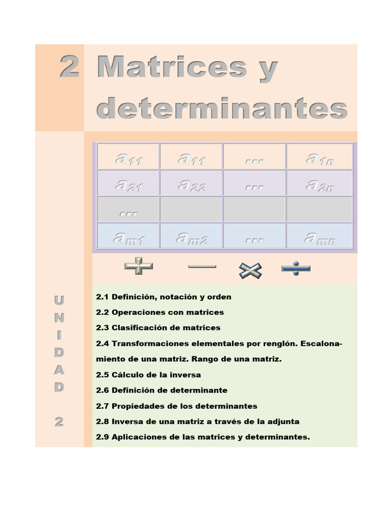 Matrices y Programación lineal - Apuntes de Álgebra Unidad 1 MATRICES Y ...