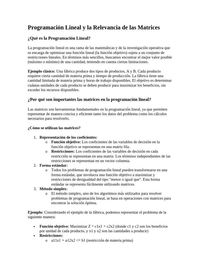 Trabajo Sobre Matrices y Programacion Lineal | PDF | Programación ...