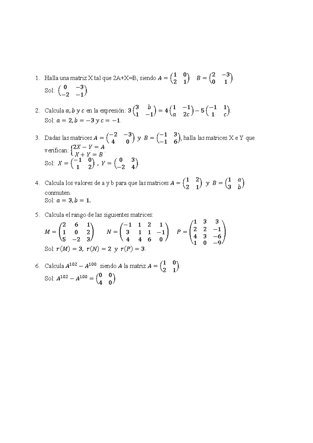 Matrices 1: Ejercicios y Soluciones - Hoja 1 - Studocu