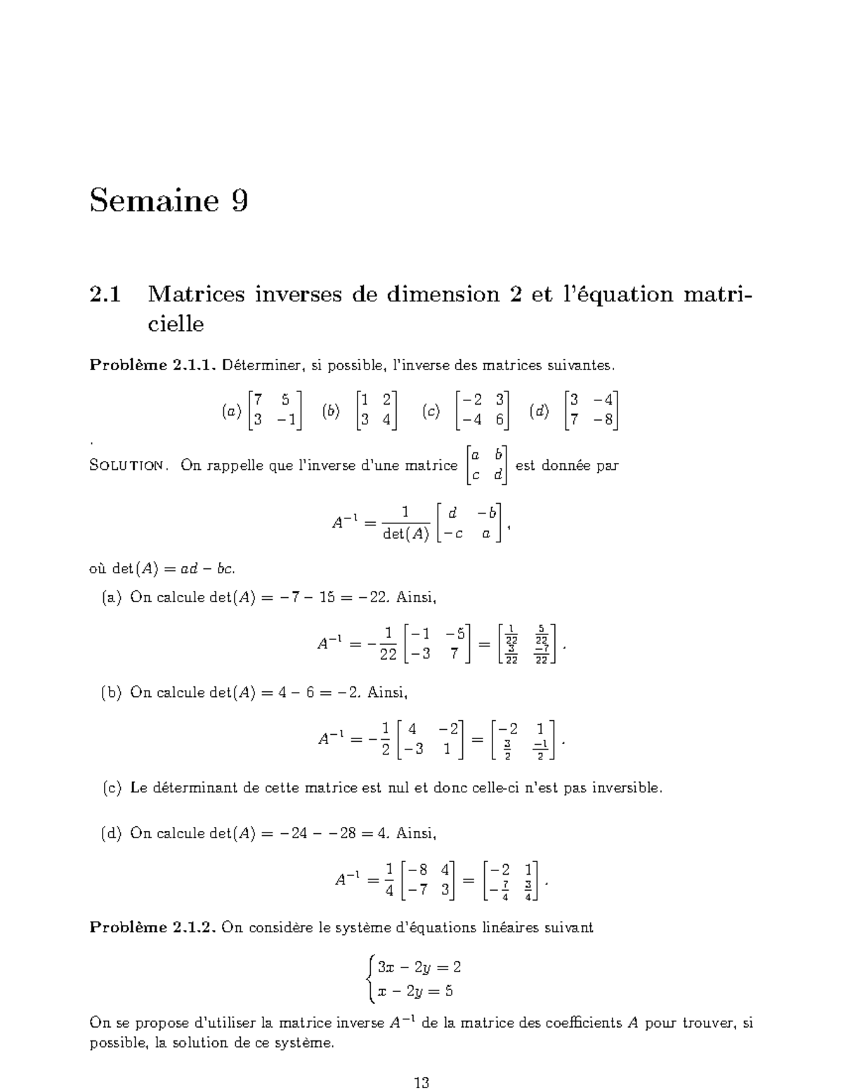 S9 - Solutions des Exercices sur les Matrices Inverses et Systèmes ...