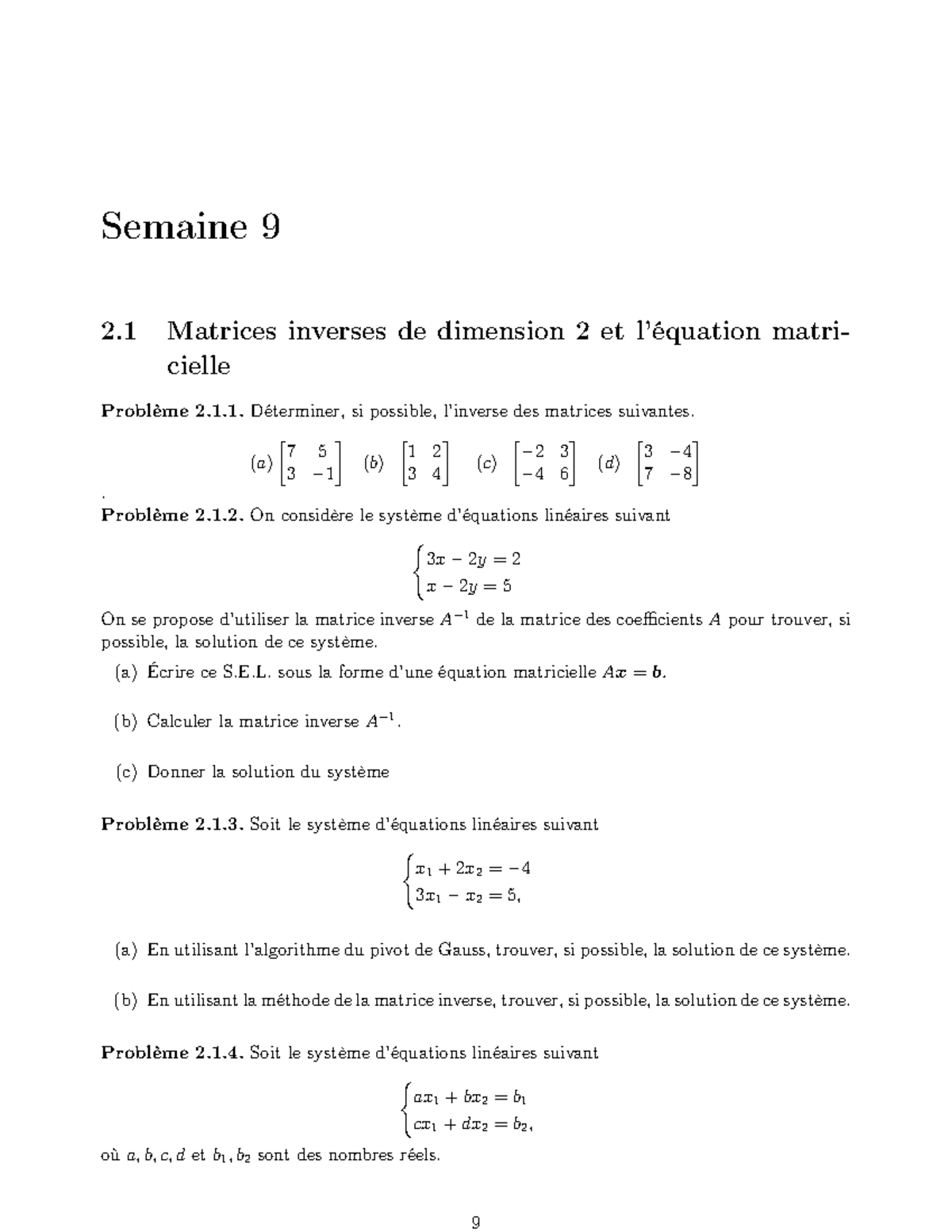 S9 EXOS - Matrices Inverses et Systèmes Linéaires - Studocu