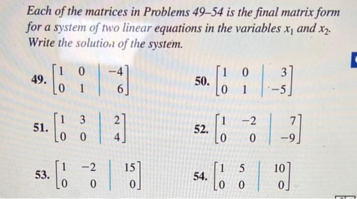 Solved Each of the matrices in Problems 49-54 is the final | Chegg.com
