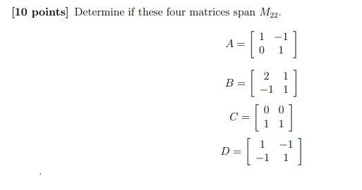 Solved [10 points] Determine if these four matrices span | Chegg.com