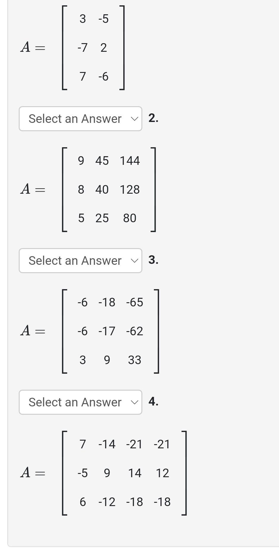 6. Describe the span of the following matrices: A1=[ 0 -1 1 0 ], A2=[ 1 ...