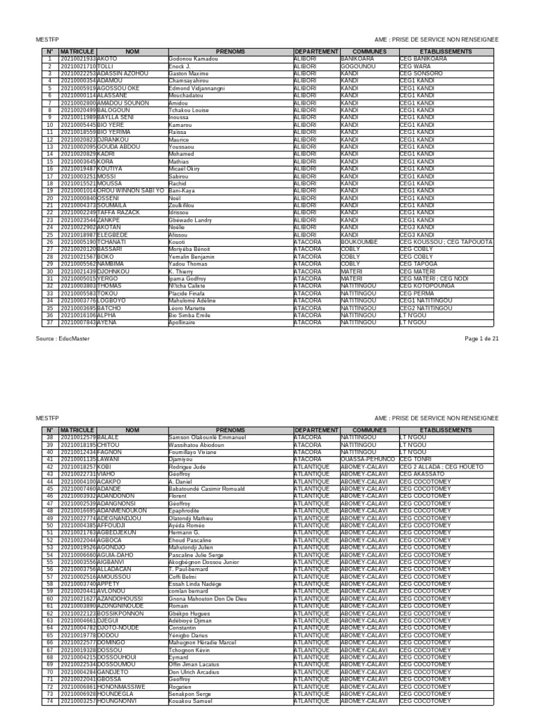 N° Matricule NOM Prenoms Departement Communes Etablissements | PDF