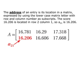 Definition and Examples of a Matrix, its entries, rows, columns, Matrix ...