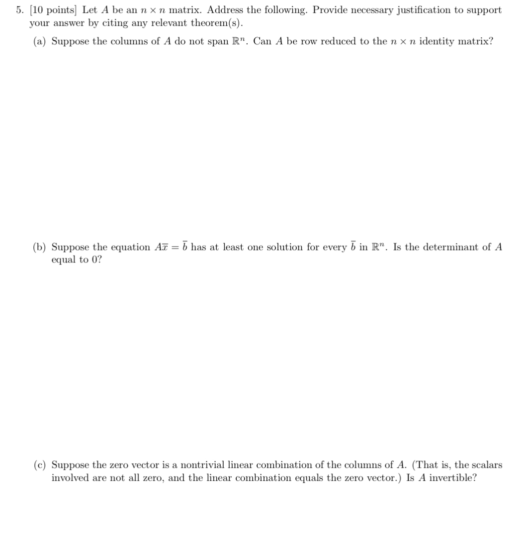 Solved by an EXPERT [10 points] Let A be an n×n matrix. Address the ...