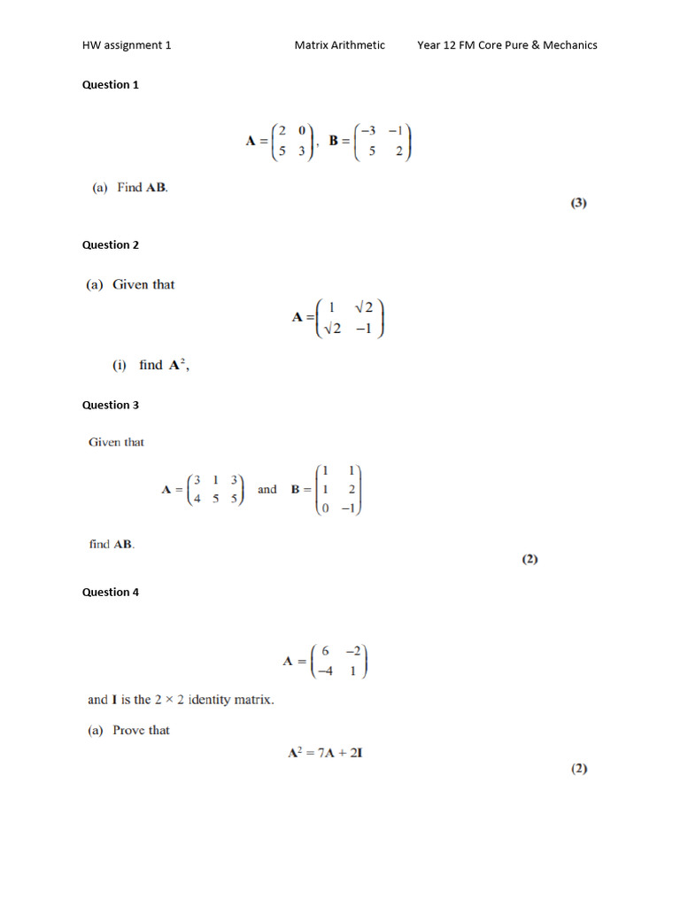 Assignment 1 Matrix Arithmetic | PDF