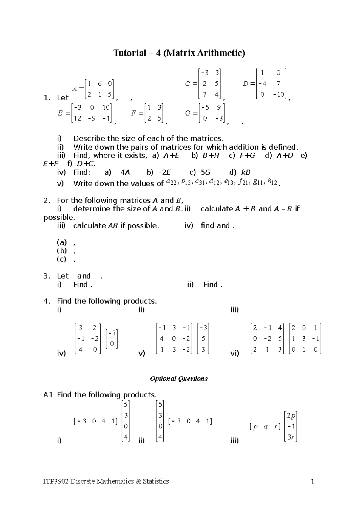 ITP3902 Tutorial 4: Matrix Arithmetic Insights and Exercises - Studocu