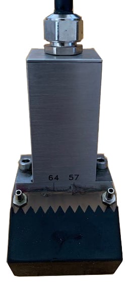 A large 8X8 2D phased array matrix probe mounted on the tapered beam ...
