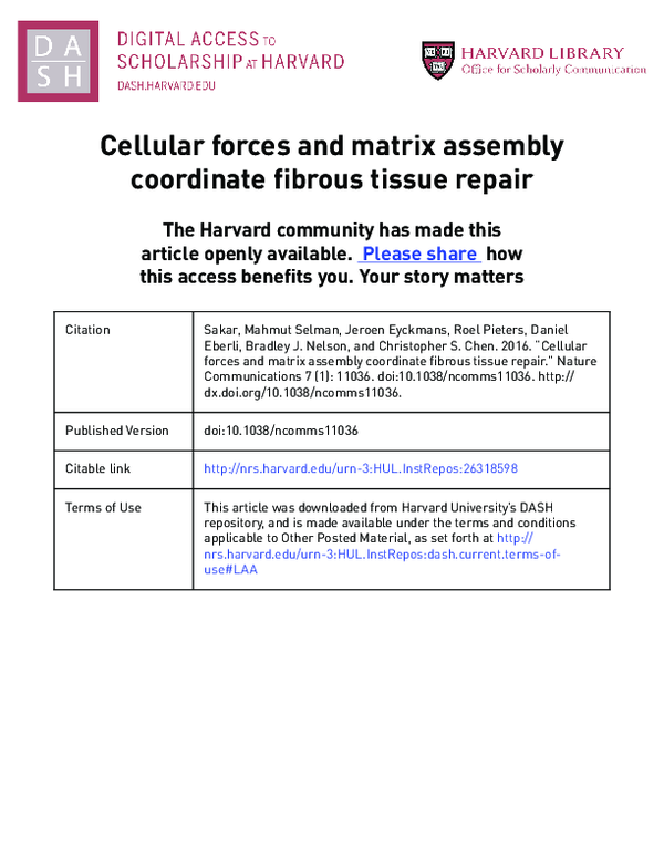 (PDF) Cellular forces and matrix assembly coordinate fibrous tissue repair