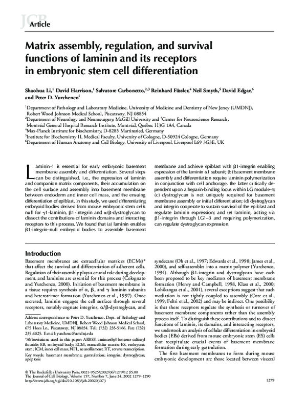 (PDF) Matrix assembly, regulation, and survival functions of laminin ...