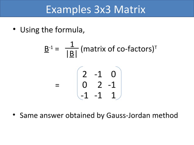 Inverse of matrices by cofactor method | PPTX