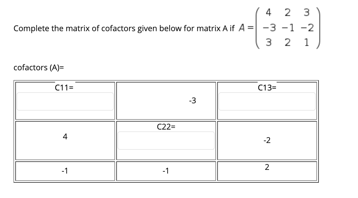 Solved Complete the matrix of cofactors given below for | Chegg.com