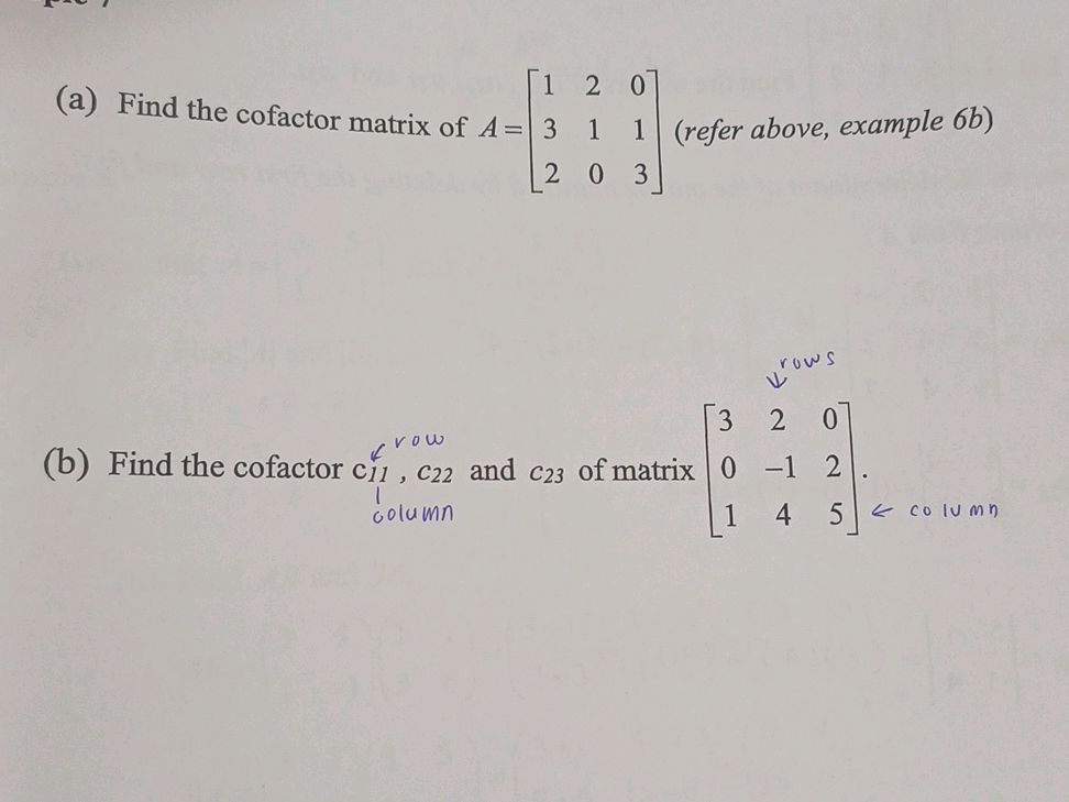 (a) Find the cofactor matrix of $A = 1 2 0 3 | StudyX
