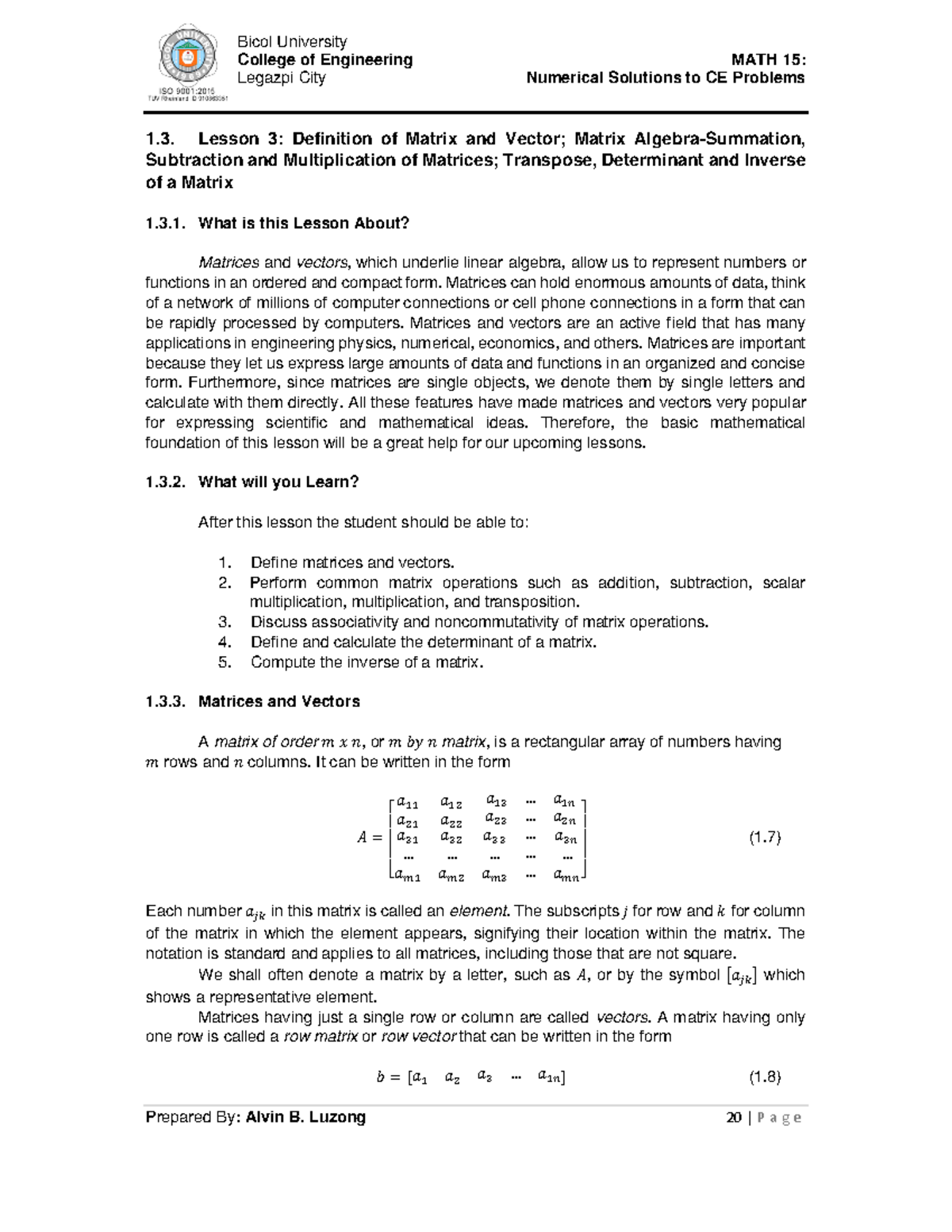 Definition-of-Matrix-and-Vector - College of Engineering MATH 15 ...