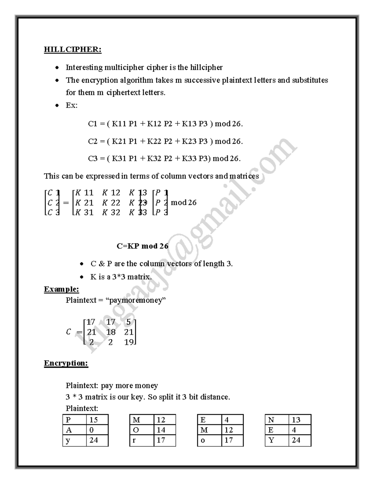 Hillcipher 1-1: Detailed Notes on the Hill Cipher Encryption Method ...