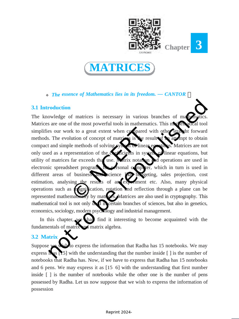 Ch 3 Matrices 12th Maths Text Book (1) | PDF | Matrix (Mathematics ...