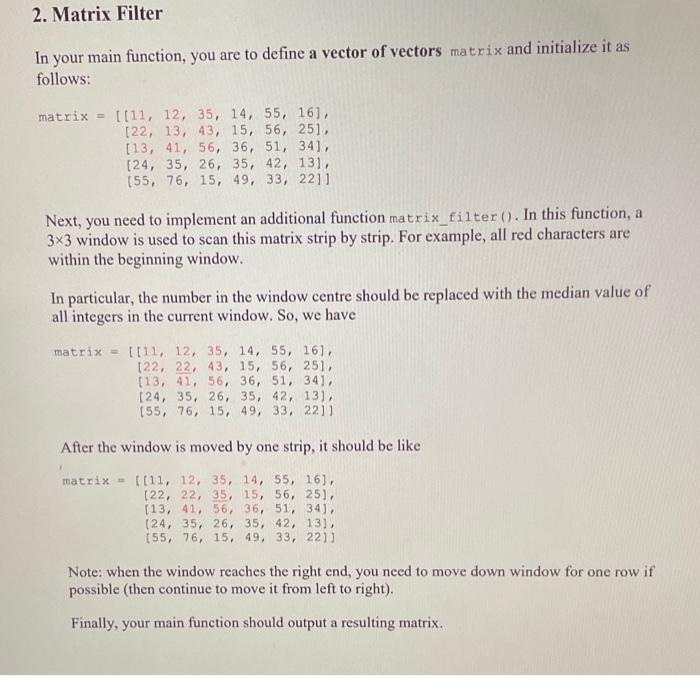 Solved 2. Matrix Filter In your main function, you are to | Chegg.com